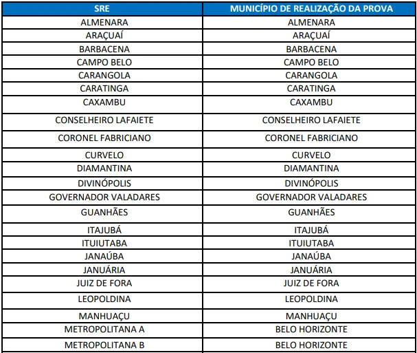 • Municípios de Realização das Provas