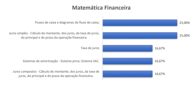 Entre os tópicos mais importantes que um candidato deve dominar em Matemática Financeira para o concurso do Banco do Brasil estão: juros simples e compostos, fluxo de caixa, taxa de juros, além de outros conceitos fundamentais em finanças. Confira abaixo os principais conteúdos que costumam cair em matemática financeira: