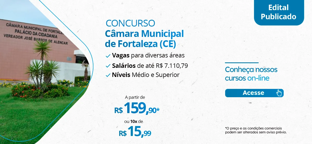 Concursos públicos oferecem ótimas oportunidades, então é natural que a concorrência seja grande. Mas o candidato que otimiza seu estudo está um passo à frente. E contar com um Curso Preparatório é o principal método para você conquistar sua aprovação no Concurso Câmara de Fortaleza.