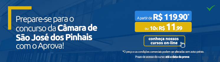 Prova disso é que no curso preparatório para a Câmara Municipal de São José dos Pinhais você estudará de forma otimizada, com videoaulas de, no máximo, 30 minutos de duração, em uma metodologia em formato de plano de estudos, que facilita a assimilação dos conteúdos mais relevantes.