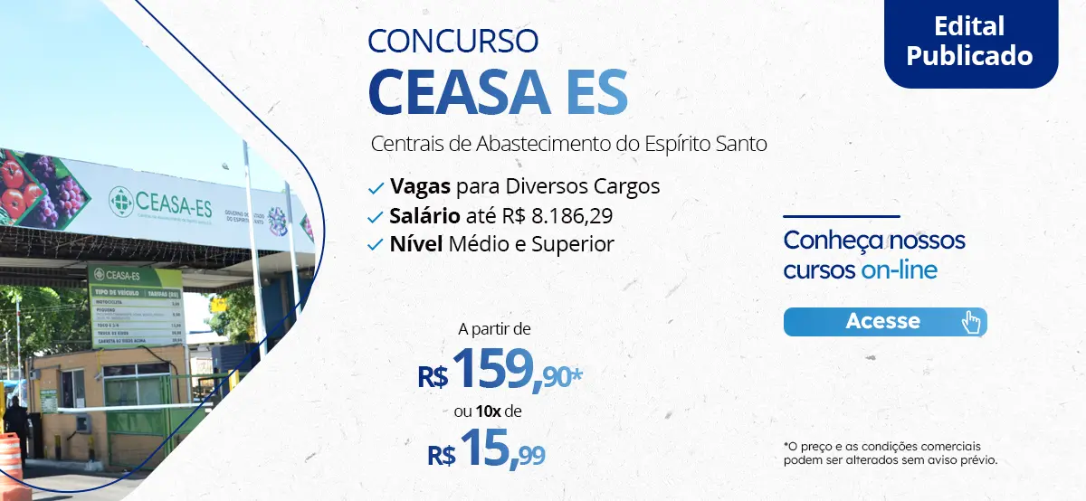 Início » Notícias » Concurso CEASA ES 2024: publicado EDITAL com 345 vagas a R$ 8MIL!