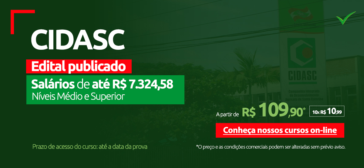 Afinal, a sua preparação só precisa durar o tempo necessário para garantir a vaga dos seus sonhos. Com toda a certeza um dos nossos cursos irá aumentar muito as suas chances de conquistar uma das vagas no concurso CIDASC (SC), venha para o Aprova e descubra o segredo para ser aprovado!