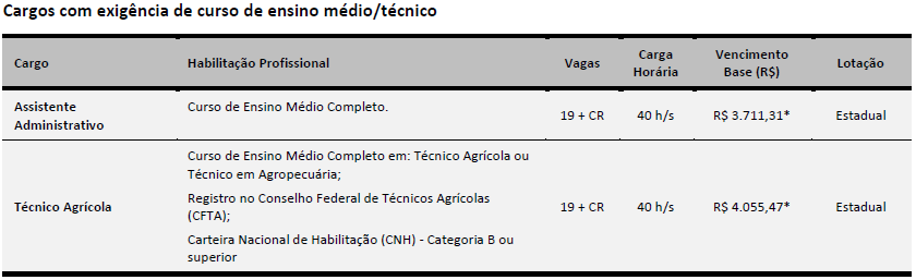 Sob organização da Fepese, são oferecidas 54 vagas de nível médio e superior para os cargos de Analista, Engenheiro, Assistente e Técnico. E a carga horária de trabalho será de 40 horas semanais.