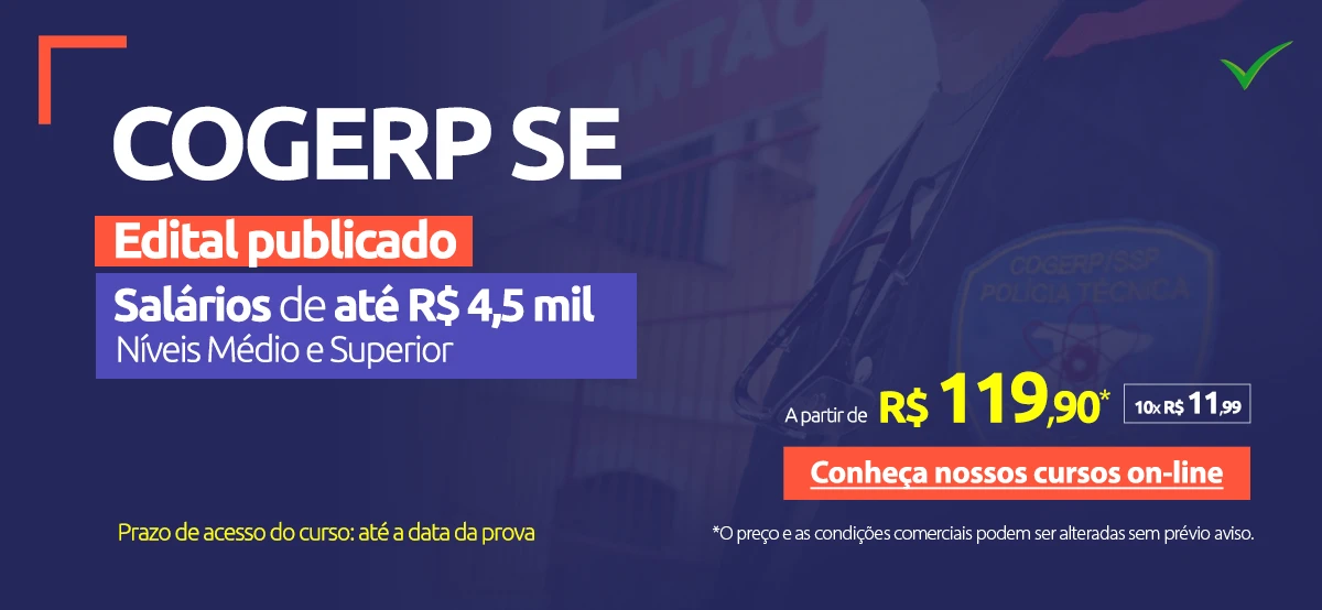 Prova disso é que no curso para o COGERP SE você estudará de forma otimizada, com videoaulas de, no máximo, 30 minutos de duração, em uma metodologia em formato de plano de estudos, que facilita a assimilação dos conteúdos mais relevantes.