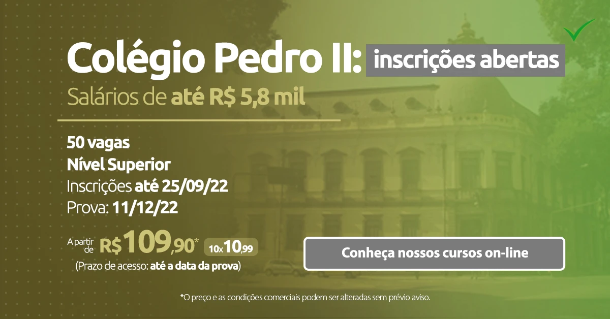 As inscrições do concurso já estão abertas e vão até o dia 25 de setembro de 2022 no site do Colégio Pedro II. A taxa de participação custa R$ 160.