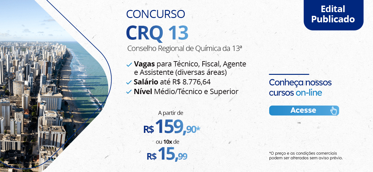 Foi publicado o Edital do Concurso CRQ 13 (Conselho Regional de Química da 13ª Região)! Com um total de 5 vagas + 91 Cadastro de Reserva para Técnico, Fiscal, Agente e Assistente em diversas áreas de níveis Médio/Técnico e Superior, este concurso oferece um salário atrativo, chegando a R$ 8.776,64. Sob organização da Banca Ibest, as inscrições já estão ABERTAS e acontecem desde o dia 12/07/2024 a 18/08/2024, e as provas estão previstas para 29/09/2024.