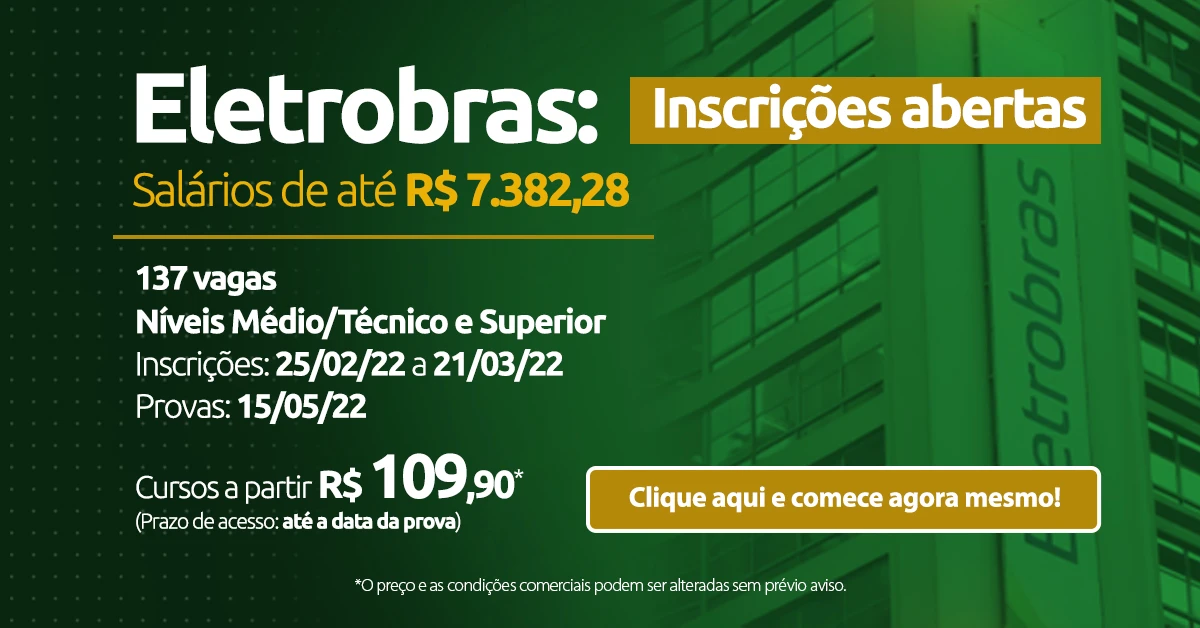 O Aprova Concursos preparou um curso exclusivo para o concurso Eletrobras 2022. Nossas videoaulas estão em formato de plano de estudos, ou seja, elas já estão organizadas na ordem dos assuntos que mais tem chances de serem cobrados na prova! Então, é só dar o play e seguir a sequência do seu ambiente de estudos, assim, você não perde tempo! E, elas também são gravadas por assunto, com a duração ideal para que você consiga aprender sobre o tema proposto pelo professor, sem ficar cansativa!