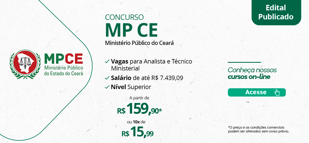 Você sabia que pode se preparar desde já? Chegou a hora de focar nos estudos para alcançar sua aprovação. E contar com um Curso Preparatório é o principal método para você conquistar a aprovação no Concurso MP CE 2025.