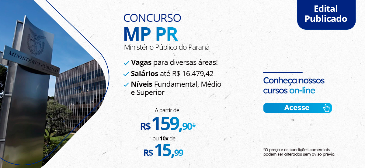 Para saber mais sobre o nosso preparatório e garantir o seu sucesso no Concurso MP PR 2024, clique já no banner abaixo e confira todas as informações necessárias. Prepare-se com quem mais entende de aprovação!