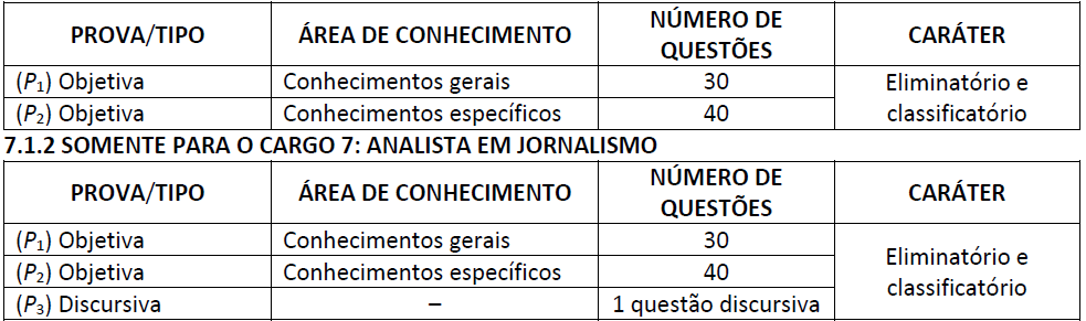 b) prova discursiva, de caráter eliminatório e classificatório, somente para o Cargo: Analista em Jornalismo.