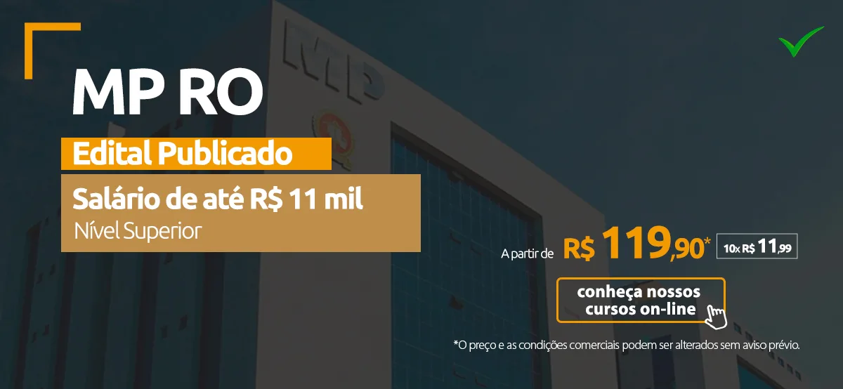 Prova disso é que no curso do MP RO você estudará de forma otimizada, com videoaulas de, no máximo, 30 minutos de duração, em uma metodologia em formato de plano de estudos, que facilita a assimilação dos conteúdos mais relevantes.