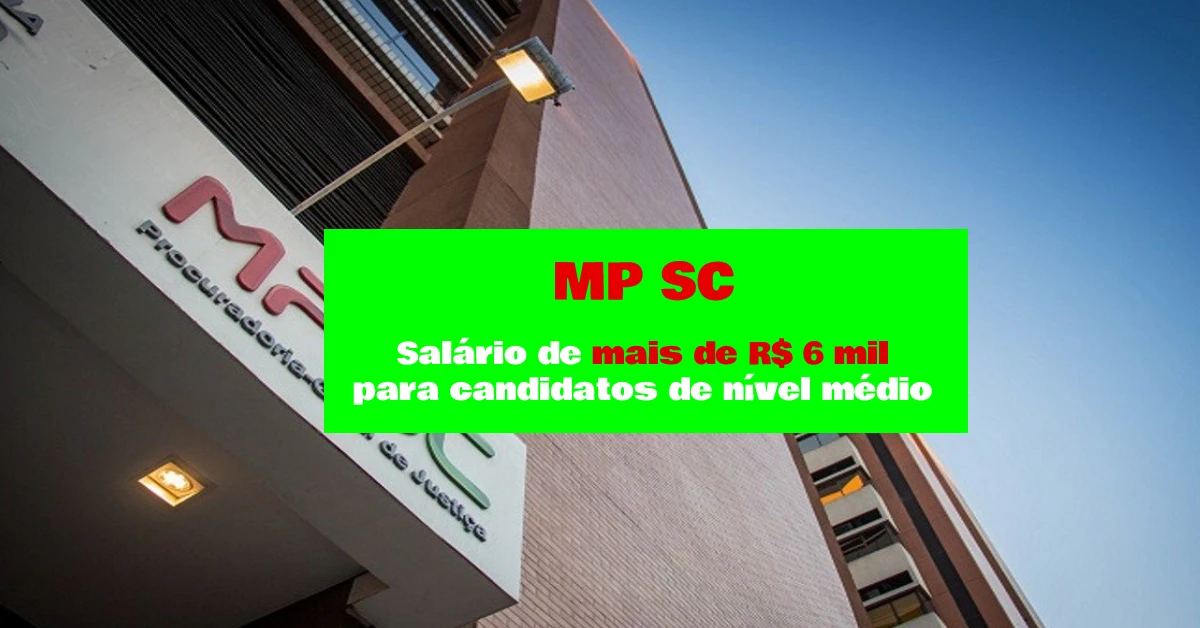 O Ministério Público de Santa Catarina (MP SC) publicou, no último dia 25/03/22, edital de concurso público com vagas para diversos cargos. Ao todo serão 50 vagas imediatas e mais cadastro de reserva. Para o cargo de Auxiliar do Ministério Público, o salário inicial é de R$ 6.233,73 + auxílio alimentação no valor de R$ 1.836,74. Ao todo, o vencimento superará os R$ 8 mil mensais.