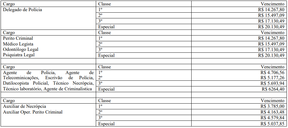 Agente de Polícia Civil 145 R$ 5.083,00 Nível superior em qualquer área