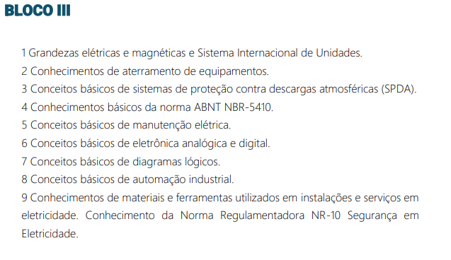 • Técnico em Manutenção em Elétrica – Conhecimentos específicos