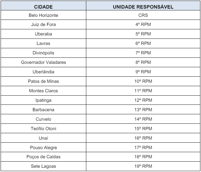 A Prova Objetiva será aplicada exclusivamente nestas cidades do estado mineiro: