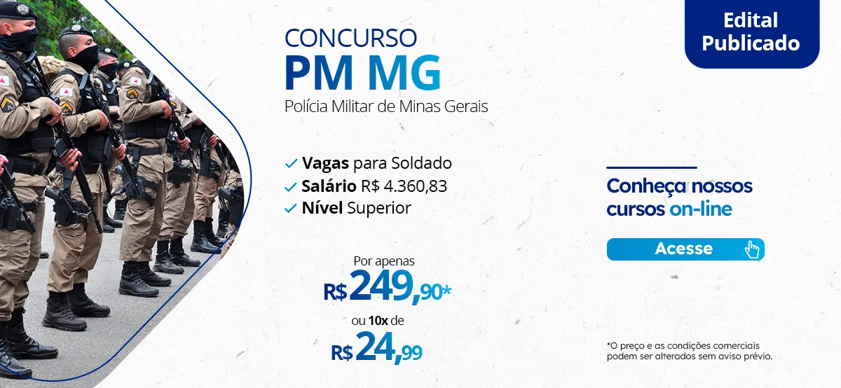 Concursos públicos oferecem ótimas oportunidades, então é natural que a concorrência seja grande. Mas o candidato que otimiza seu estudo está um passo à frente. E contar com um Curso Preparatório é o principal método para você conquistar sua aprovação no Concurso PM MG 2024.