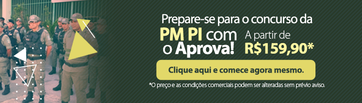 O Aprova Concursos preparou um curso exclusivo para o concurso PM PI 2021. Nossas videoaulas estão em formato de plano de estudos, ou seja, elas já estão organizadas na ordem dos assuntos que mais tem chances de serem cobrados na prova! Então, é só dar o play e seguir a sequência do seu ambiente de estudos, assim, você não perde tempo! E, elas também são gravadas por assunto, com a duração ideal para que você consiga aprender sobre o tema proposto pelo professor, sem ficar cansativa!