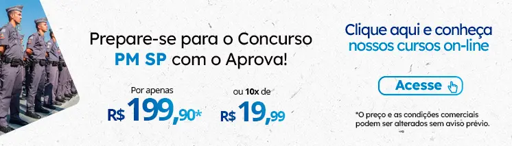 Para que você esteja preparado(a) e consiga se destacar nesse processo seletivo concorrido, o nosso preparatório exclusivo do Concurso PM SP está pronto para te auxiliar! Oferecemos um material focado, que aborda apenas os conteúdos realmente relevantes para a prova, direto ao ponto.