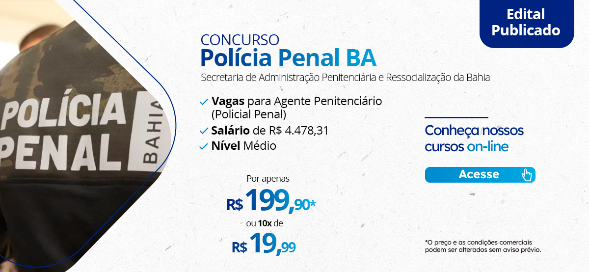 Concursos públicos oferecem ótimas oportunidades, então é natural que a concorrência seja grande. Mas o candidato que otimiza seu estudo está um passo à frente. E contar com um Curso Preparatório é o principal método para você conquistar sua aprovação no Concurso Polícia Penal BA.