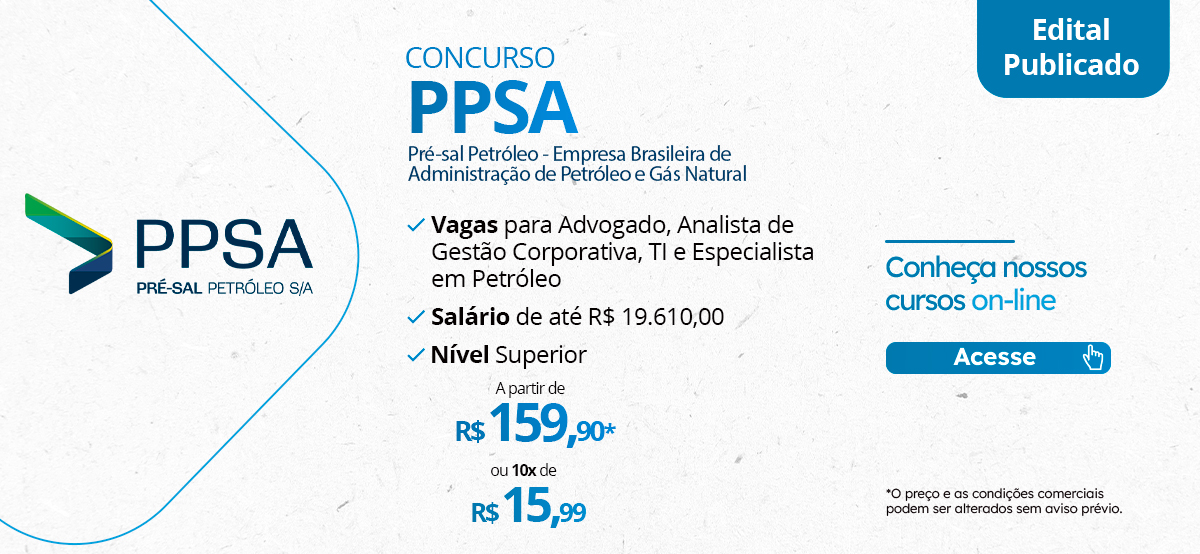Chegou a hora de focar nos estudos para alcançar sua vaga no serviço público. E contar com um curso preparatório é o principal método para você conquistar a aprovação no Concurso PPSA 2025.