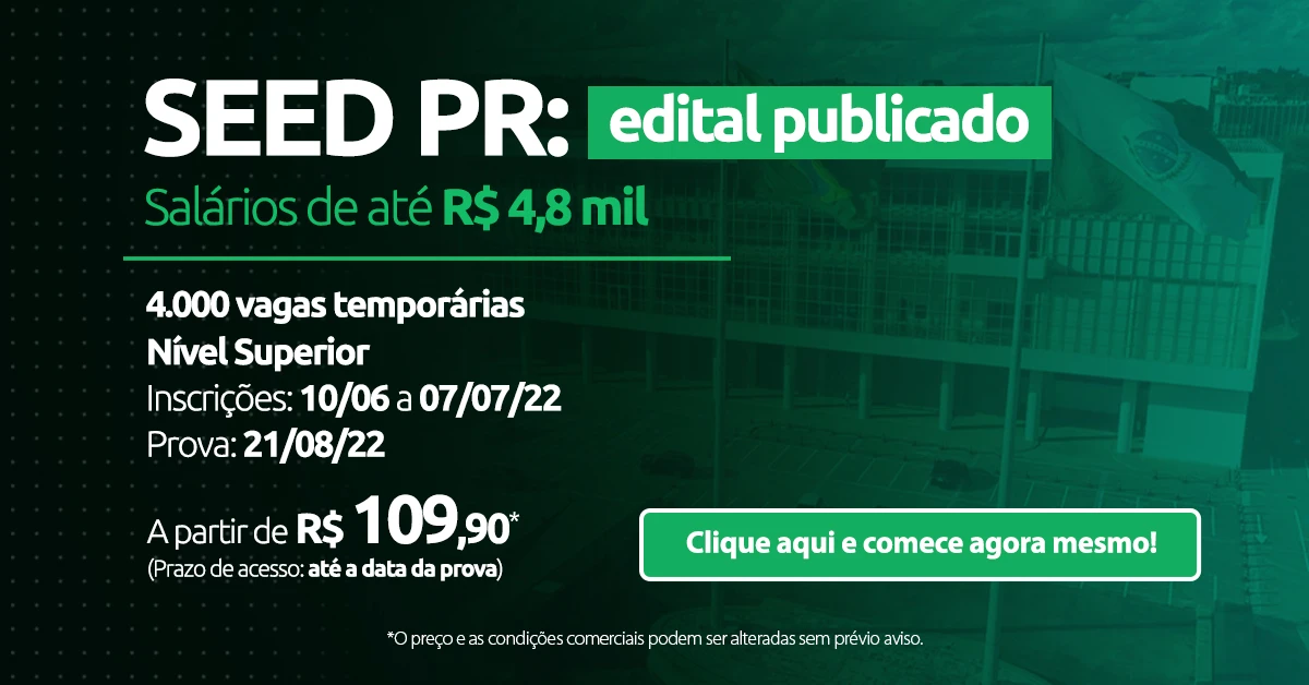 Primeiramente, o concurso SEED PR, abriu 4.000 vagas temporárias de nível superior para professores e pedagogos. É importante ressaltar que as inscrições serão agora em junho e julho e a prova está prevista o mês de agosto. Preparamos um texto especial com tudo o que você precisa saber, confira a seguir!