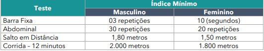 A Prova de Condicionamento Físico por Testes Específicos constaria dos testes especificados a seguir:
