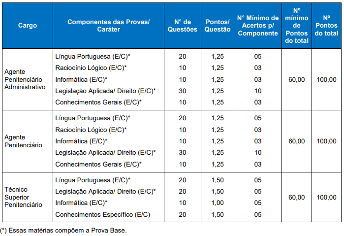 | Técnico Superior Penitenciário – Educação Física | 1 | R$ 8.500,00 | Ensino Superior Completo como Bacharel em Educação Física e registro no respectivo órgão de Classe |