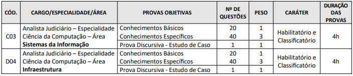 • Analista Judiciário – Especialidade Ciência da Computação – Área: Infraestrutura de TI: dia 19/06/2022, no período da tarde.