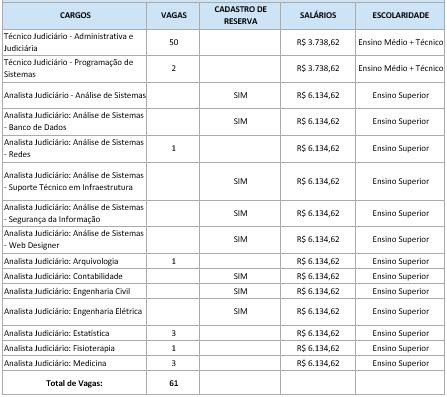 • Vagas: 61 e Cadastro Reserva