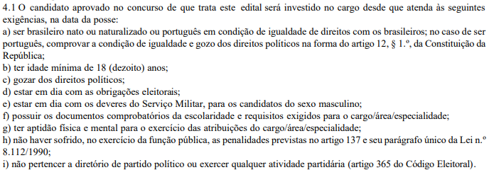 Como ainda não há edital publicado, não existem informações oficiais sobre os requisitos. No entanto, devem ser semelhantes ao último certame.