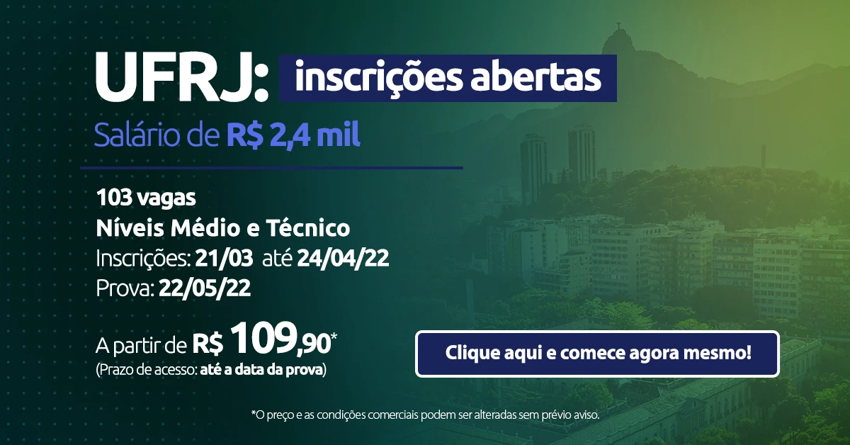 O concurso UFRJ publicou edital com 103 vagas para os níveis médio e técnico, com salário de R$ 2,4 mil. As inscrições vão de 21/03 a 24/04 e a prova será em maio. Então, para você saber como fazer o concurso da ufrj e já iniciar a sua preparação, leia o texto a seguir!