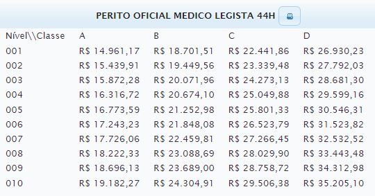 Evolução Salarial – Perito Oficial Odonto-Legista